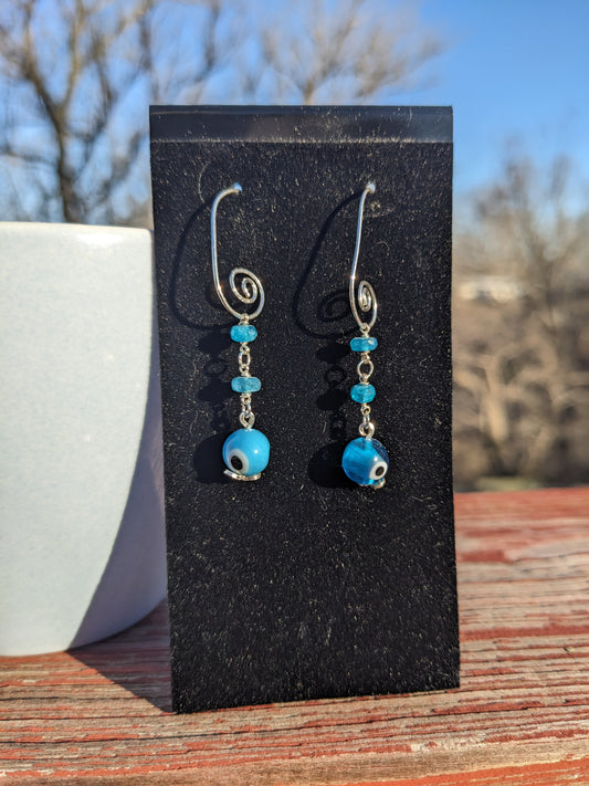 Blue Apetite Evil Eye Dangle Earrings
